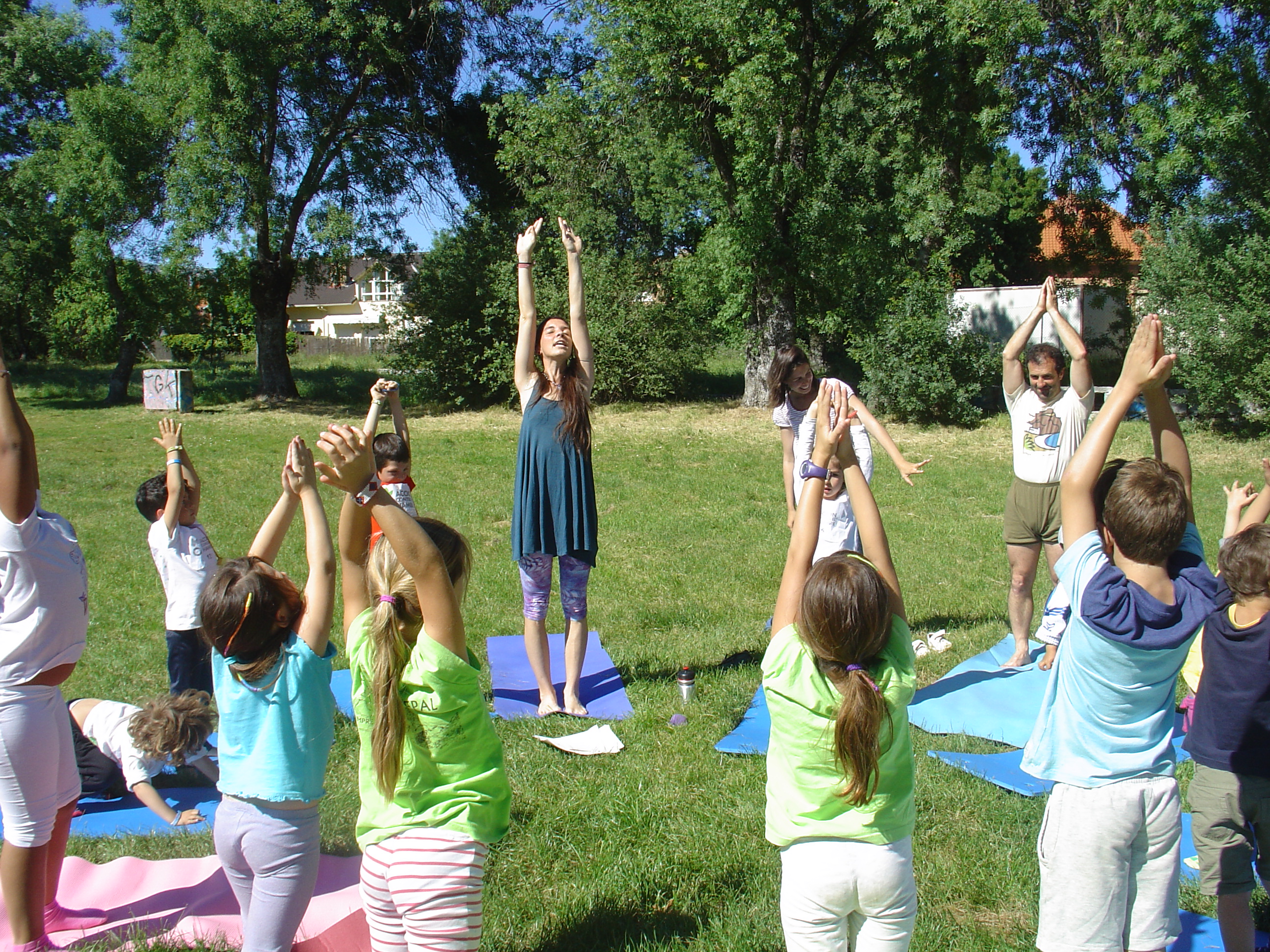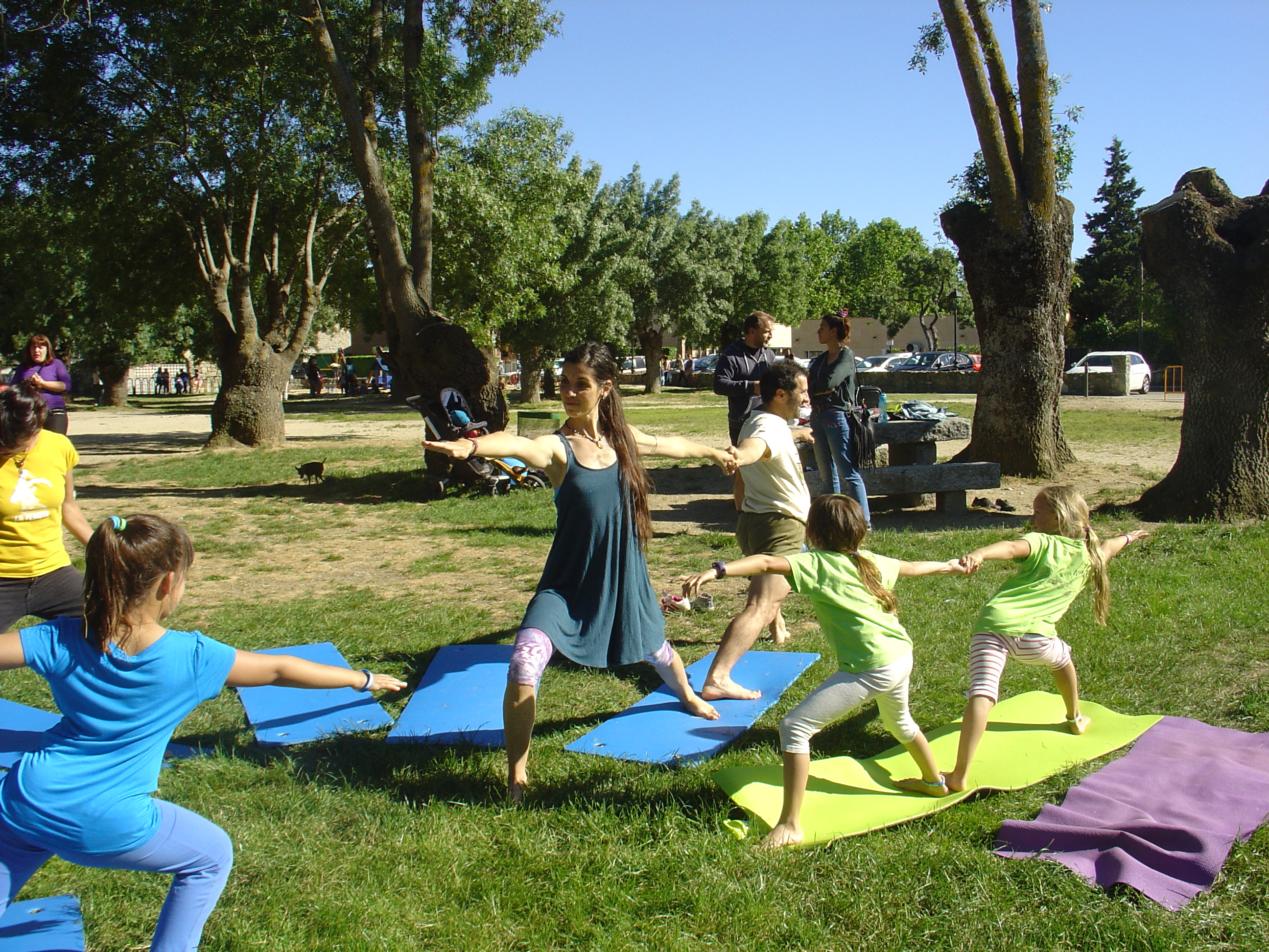 Más tarde dos clases seguidas ofrecidas en el parque del  Río por Elena Rodriguez (niños)  fueron amenizadas por una quincena de niños que se iniciaban en esta práctica de una manera lúdica y a través de una historia que les llevaba al corazón de la India donde ellos eran los protagonistas con su práctica.