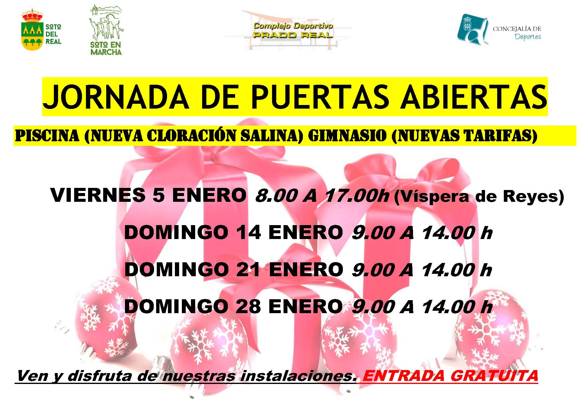 Para comprobar los beneficios de la cloración salina te invitamos a probar la instalación, de la piscina y el gimnasio de forma gratuita durante varias jornadas del próximo mes de enero: