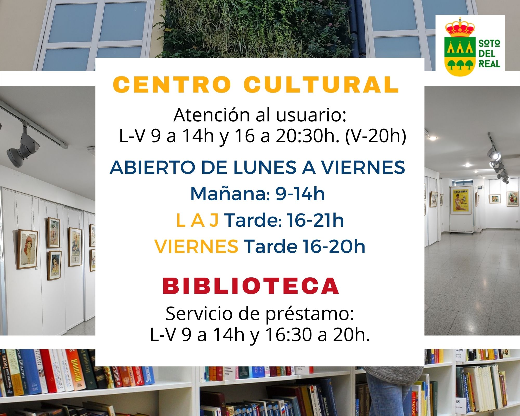 Para reservar alguna de las salas, acude al Centro Cultural en la Calle Real, nº 6, de 9:00h a 14:00h y de 17:00h a 21.00h, llama al teléfono 91 848 01 14, o manda un email a centrocultural@ayto-sotodelreal.es.