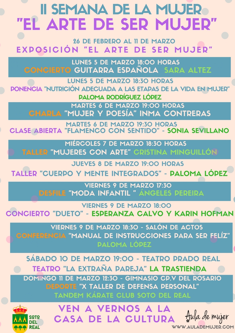 PROGRAMACIÓN PARA LA II SEMANA DE LA MUJER: «EL ARTE DE SER MUJER»
