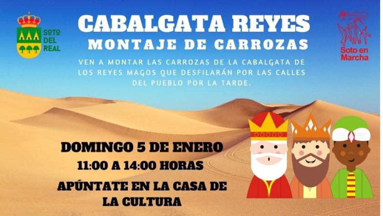 Ven a montar las carrozas de la Cabalgata de los Reyes Magos que desfilarán por las calles del pueblo por la tarde. Para niños y niñas acompañados de adultos.