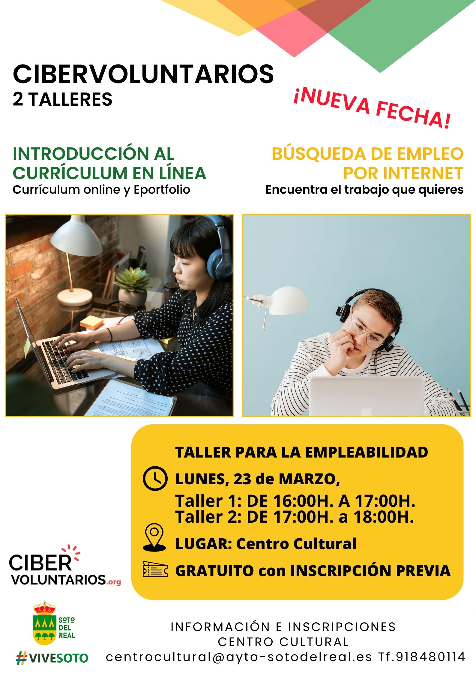 INSCRIPCIÓN: Gratuita y obligatoria en el Centro Cultural (presencial, mail, teléfono).