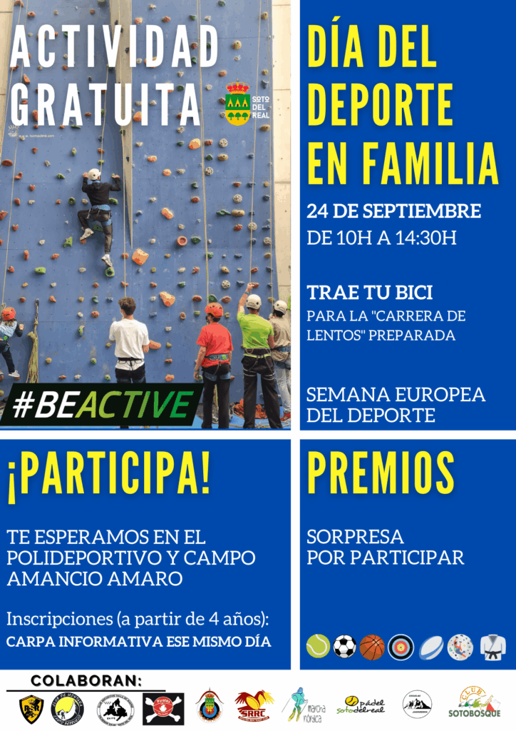 - Del 23 al 30 de septiembre Soto del Real celebra la 8ª Semana Europea del Deporte.