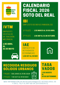 • Pago telemático de impuestos, a través de la Oficina Virtual Tributaria del Ayuntamiento de Soto del Real: